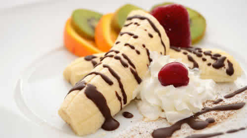 It is easy to make and perfect for any occasion. Enjoy it as it is or top it with chocolate sauce, caramel or nuts. Our banana dessert is fresh, delicious and irresistible!